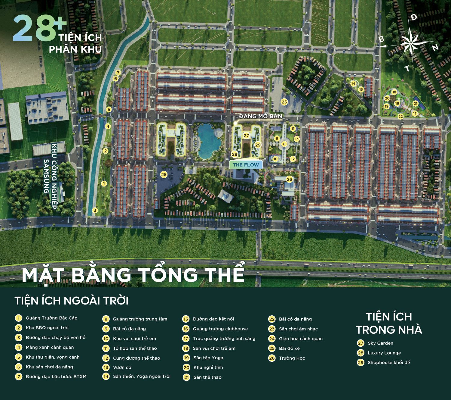 - Lõi trung tâm KĐT: The Flow giữ vị thế trung tâm trong KĐT Yên Bình, cư dân thừa hưởng trọn vẹn quy hoạch bài bản với mật độ xây dựng chuẩn đô thị hiện đại: