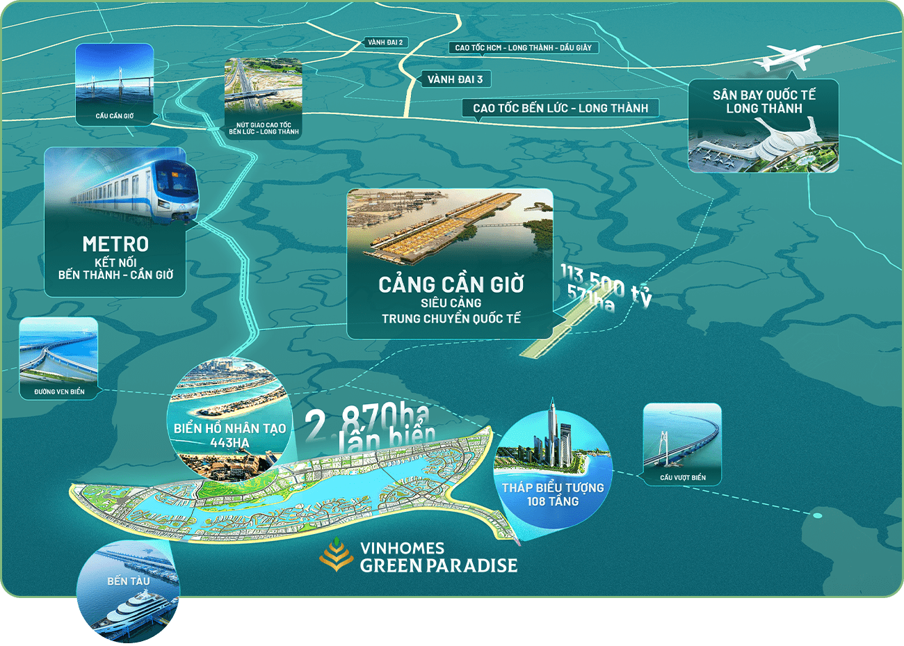- Dự kiến khoảng 35–45 phút di chuyển từ trung tâm TP.HCM khi cầu Cần Giờ và các tuyến cao tốc – Vinspeed hoàn thiện.